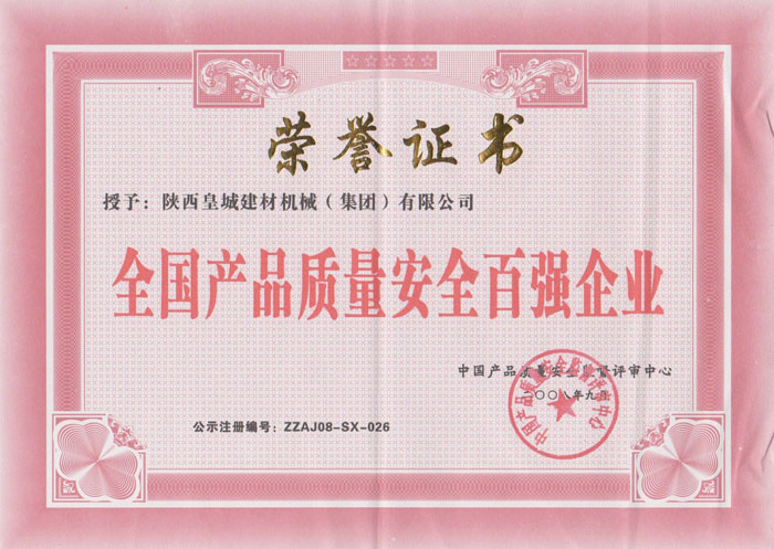 全國產(chǎn)品質(zhì)量安全百強企業(yè)